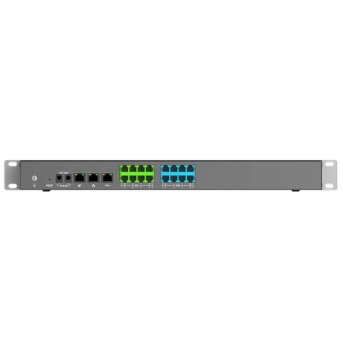 IP PBX appliance, 8 RJ11 FXS, 8 RJ11 FXO, 2x GbE PoE LAN/WAN, 1 Hot Standby port, 1500 SIP users, 200 concurrent calls, UCM RC, 12V/2A PSU